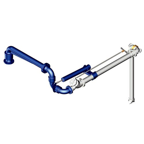 The supported boom Long Range Top Loading arm provides the greatest reach of all top loaders which is mounted on a horizontal boom assembly that gives a wide range of operation on both vertical and horizontal planes. This allows multiple truck or rail car compartments to be loaded without the need for re-positioning.